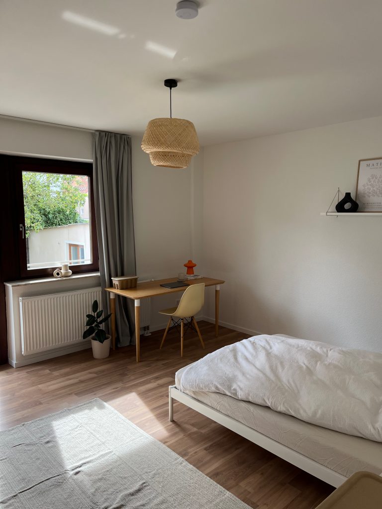 Angeboten wird ein ca. 18 qm großes Zimmer in einem wunderschönen Stadthaus in Stuttgart Feuerbach. Die Wohnung wurde 2024 umfassend hochwertig saniert. Die stilvolle 3-Zimmerwohnung befindet sich im Erdgeschoss und erstreckt sich über ca. 73 qm. Zum aktuellen Zeitpunkt sind bereits 2 von 3 Zimmern vermietet. Es wohnen aktuell (duale) Studenten und Praktikanten in den Räumlichkeiten. Die große Küche lädt zum gemeinsamen Kochen und Quatschen ein.