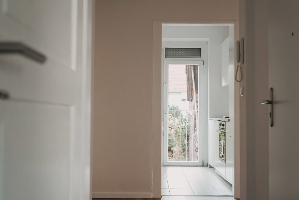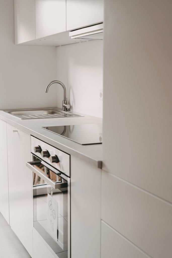 Die Wohnung wird mit einer neuen weißen Einbauküche mit viel Stauraum vermietet. Dabei wurde sowohl ein Kühlschrank, ein Geschirrspüler, ein Herd als auch ein Induktionskochfeld mit einer leistungsstarken Dunstabzugshaube installiert. Die Einbauküche wird für zusätzlich 25 €/Monat/Person vermietet und ist in den sonstigen Nebenkosten enthalten.