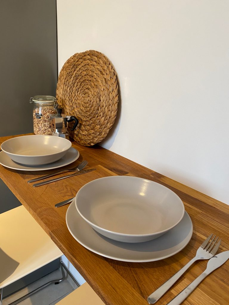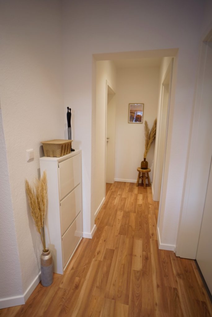 Das Zimmer ist mit stilvollen Möbel eingerichtet und kann direkt bezogen werden. Darüber hinaus wird die Wohnung mit einer neuen weißen Einbauküche mit viel Stauraum vermietet. Dabei wurde sowohl ein Kühlschrank, ein Geschirrspüler, ein Herd als auch ein Induktionskochfeld mit einer leistungsstarken Dunstabzugshaube installiert. Sowohl die Umlage für die Möblierung alsauch für die Einbauküche ist in den sonstigen Nebenkosten aufgeführt.